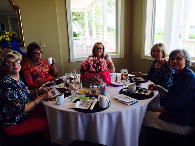 President Gayle Todd welcomed everyone and explained to those attending that the front of the program depicting our theme for the year, “To Plant a Garden is to Believe in Tomorrow”, could be colored and entered into a contest for best “adult coloring” which would be judged at the end of the meeting. Members and guests colored throughout the meeting and social. FUN! After a short speech by Gayle about the successful year for HBBC, Diana Hadesty blessed the food.