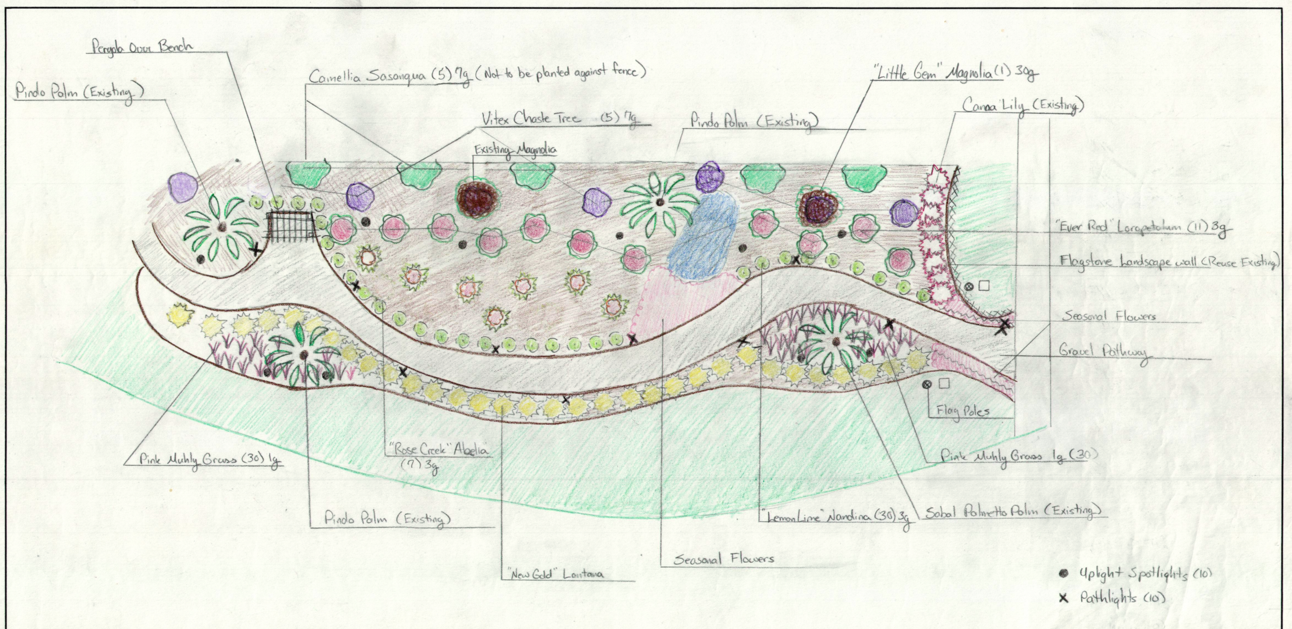 - There will be a new irrigation system to correctly water the plantings and attractive lights to highlight and add interest at night.