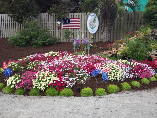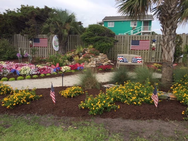 The Holden Beach Beautification Club has been busy prepping Padgett Garden and Town Hall for summer guests and holiday visitors. The hard work of the Landscaping Committee is in full bloom in all the gardens and the special touches from the Seasonal Decor Committee at Padgett Garden and Town Hall enhance the effect. The patriotic decor sets off the gorgeous floral display. Thanks to both of these committees for all the hard work! The Holden Beach Beautification Club wishes everyone a happy and safe Fourth of July!