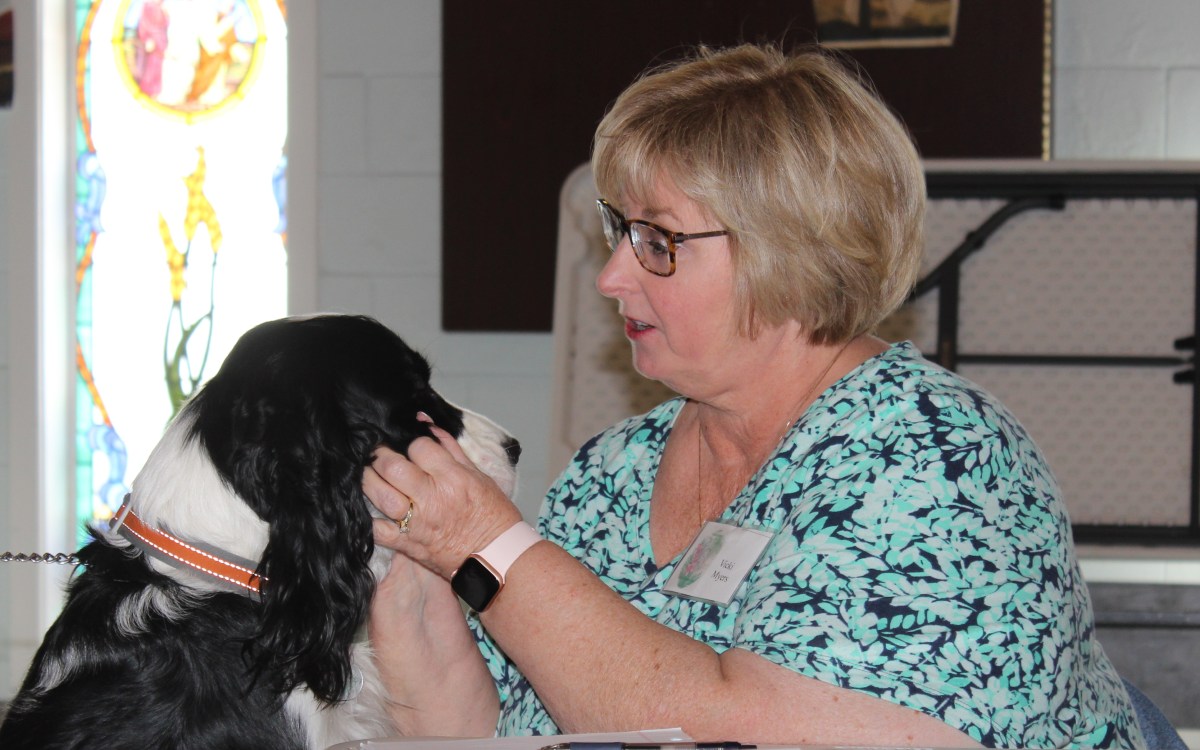 IMG_9787 Oct14 Published at 3864 × 2415 in October Meeting Lets the Dogs In ← Previous Next → Rescue dog Charli gets a greeting from Vicki Myers.