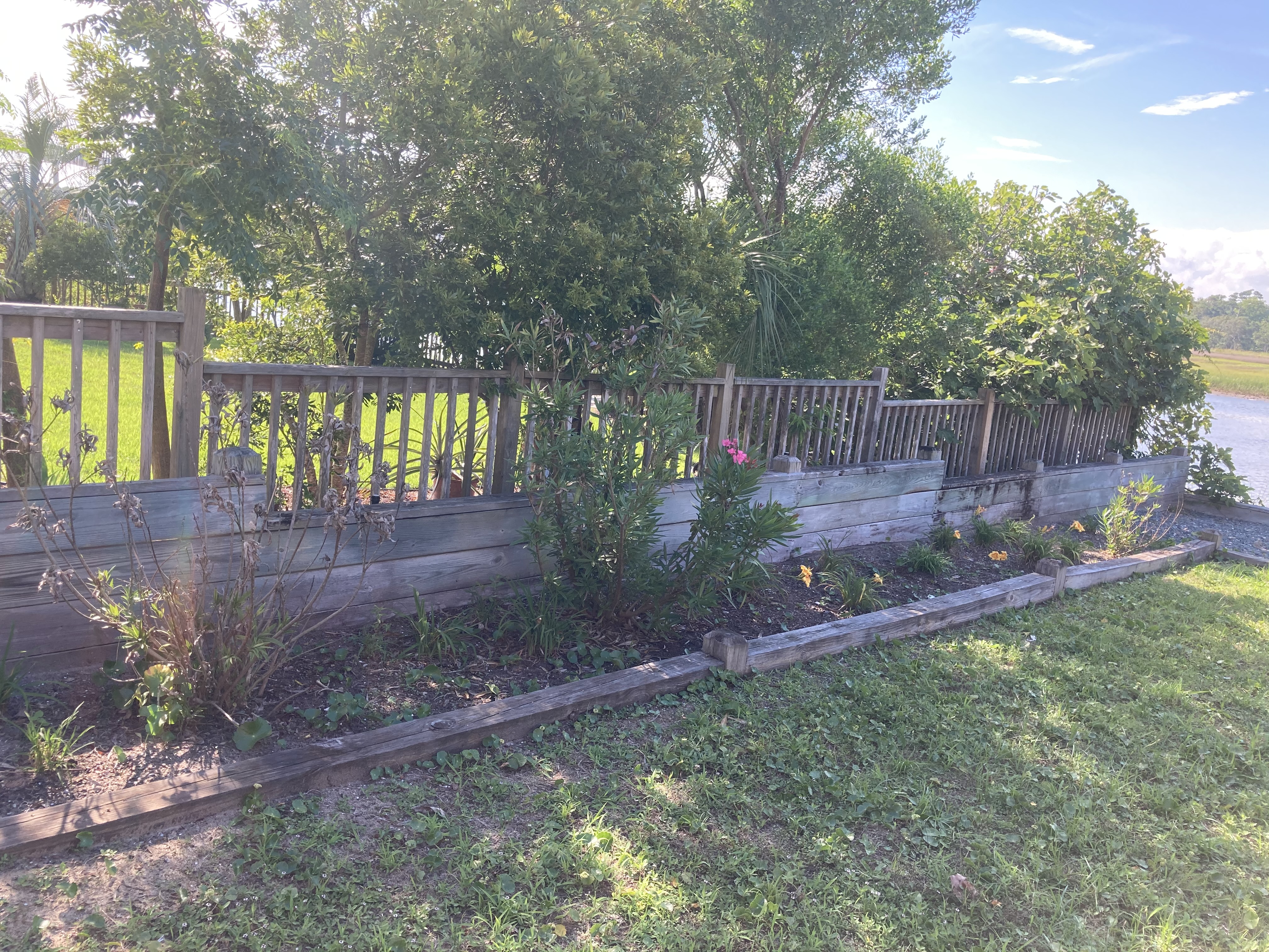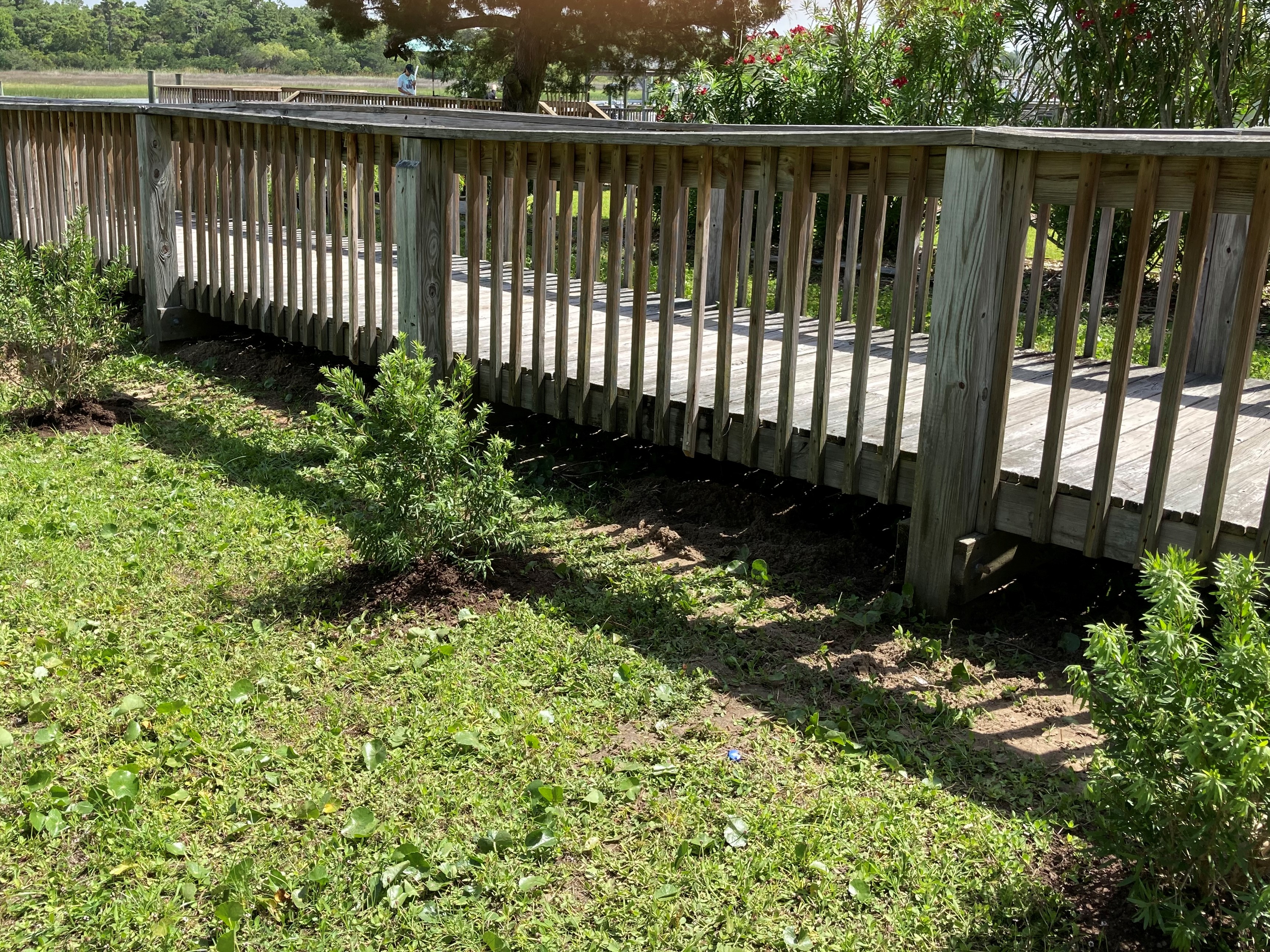 The Holden Beach Beautification Club gave Halstead Park a much-needed makeover on Saturday. This small park on the waterway at the end of Halstead St. features a picnic area and a fishing dock and has suffered from a lack of water and maintenance. Members cleared dead vegetation and planted perennials and a few colorful annuals. Still to come, a colorful new sign will be placed to identify the park. Check out the before and after photos!