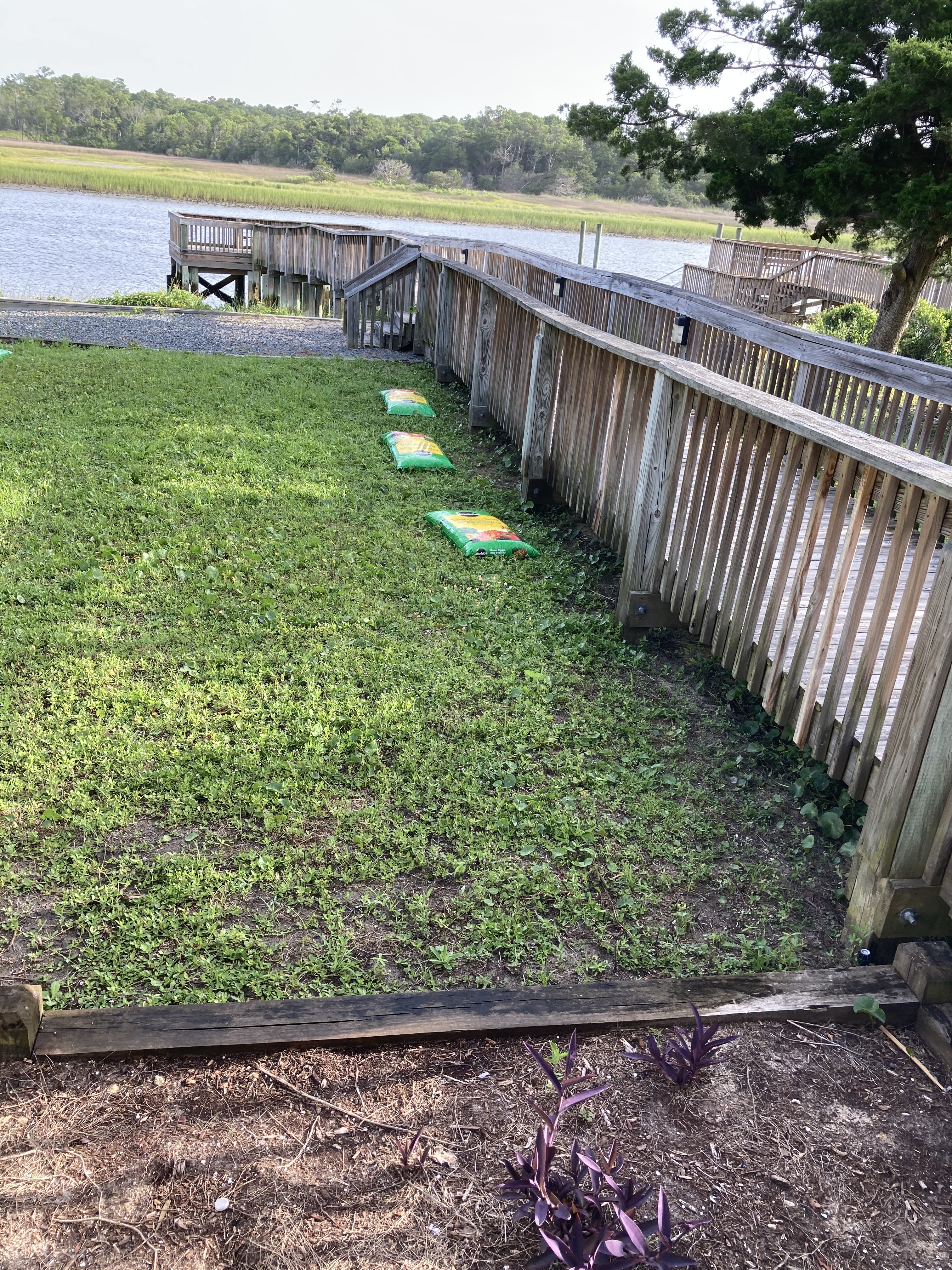 The bed on the waterway side was cleaned and planted with Purple Queen plant.