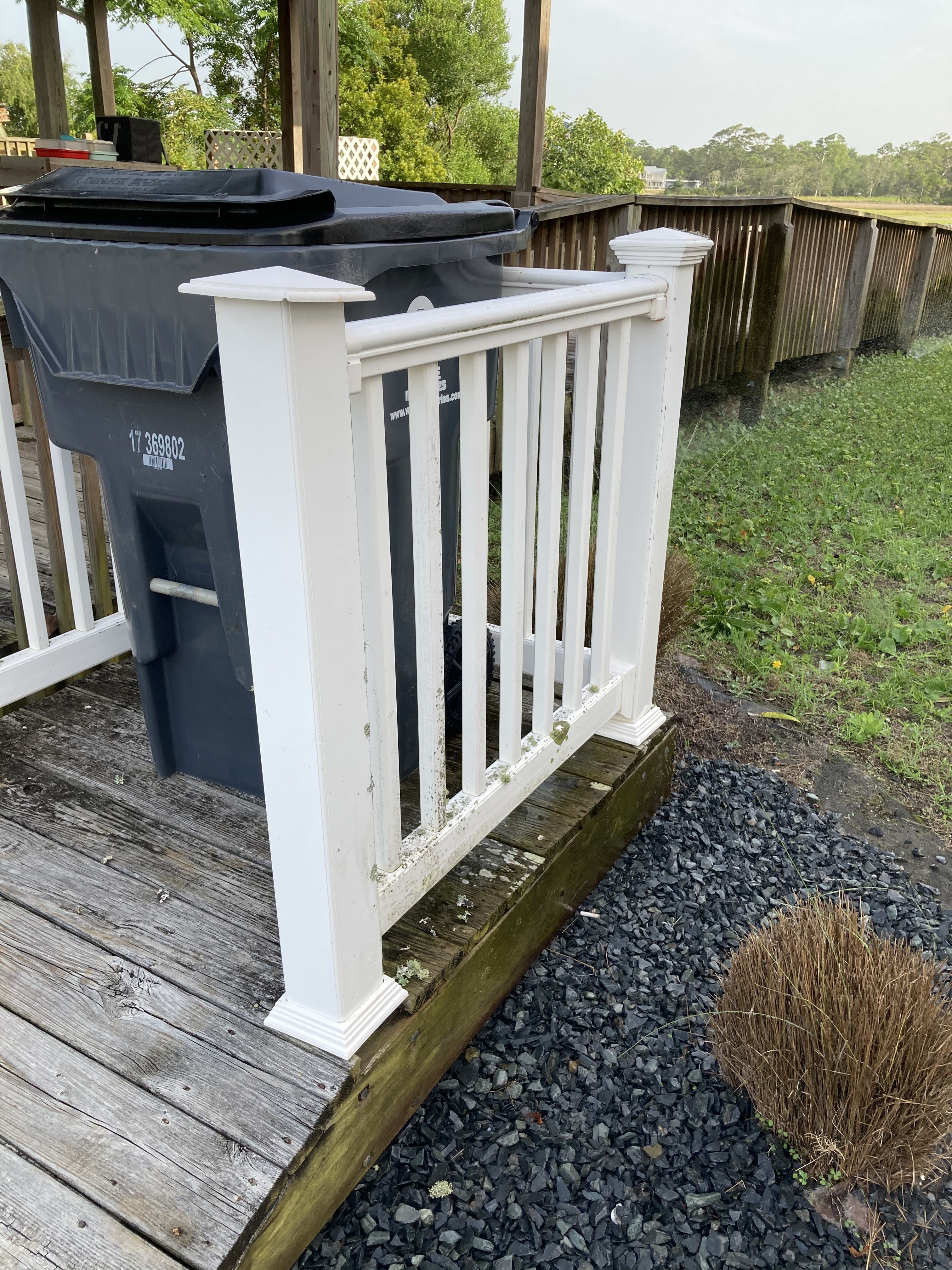 Beside the trashcan area, a dead Muhly Grass was removed and the volunteer Palm was replanted in the spot.