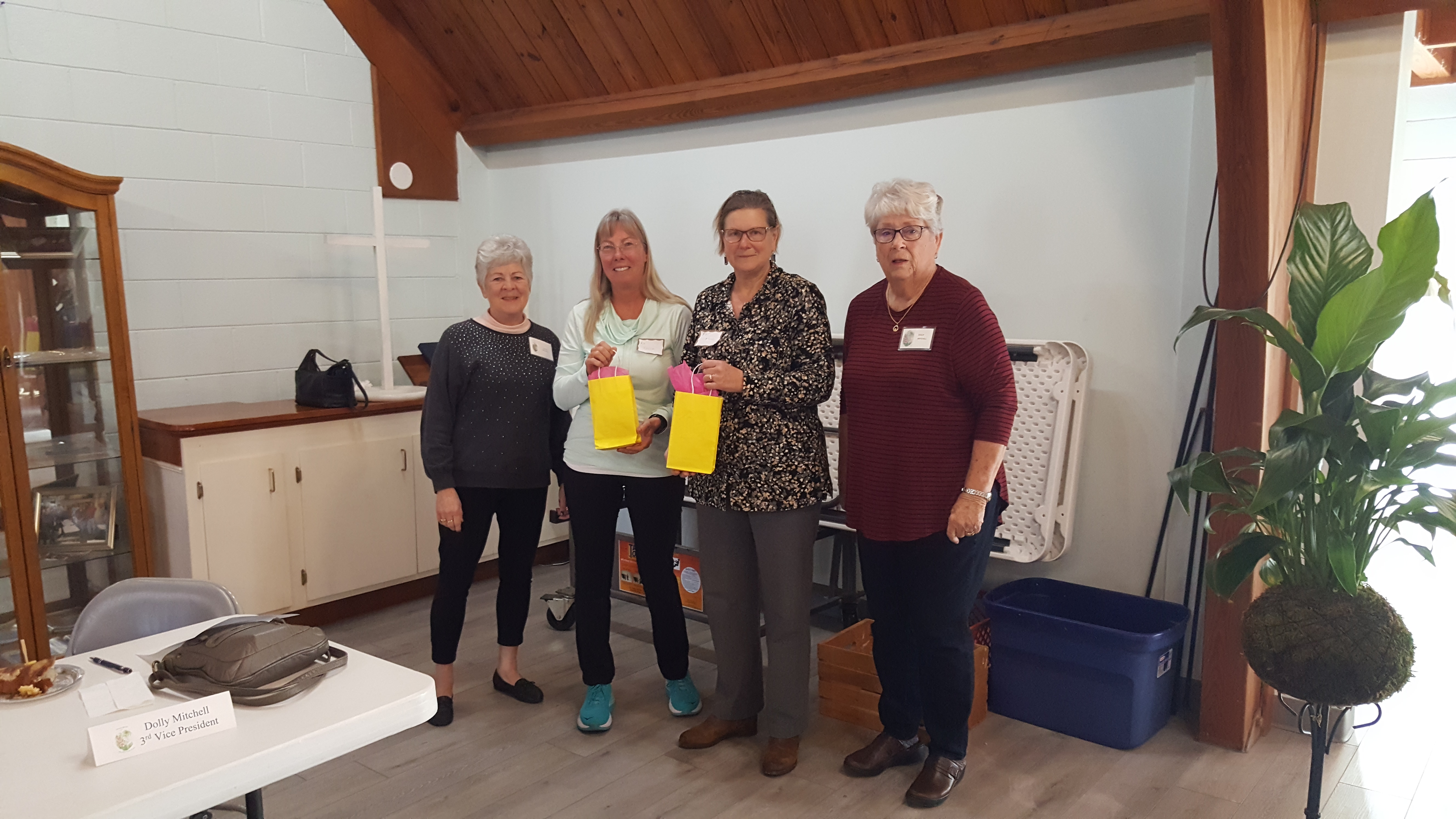 20200108_130657 Jan9 Published at 5312 × 2988 The Club welcomed two new members at the meeting. Secretary Denise Mirandola presented Kim Keech and Pat Kwiatkowski with welcome gifts as Dolly Mitchell looks on.