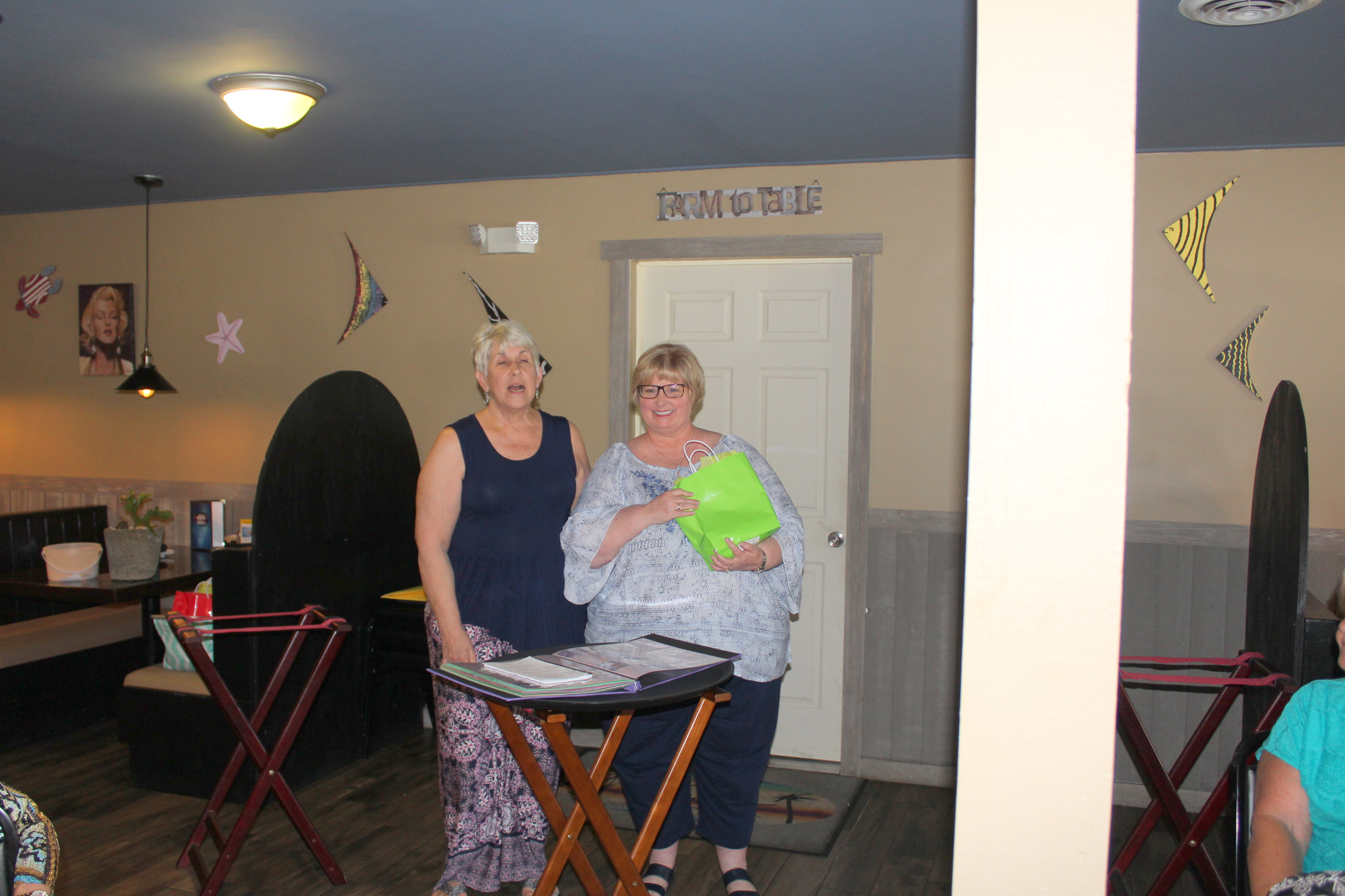 Gina Martin presents the Golden Trowel Award to Vicki Myers.