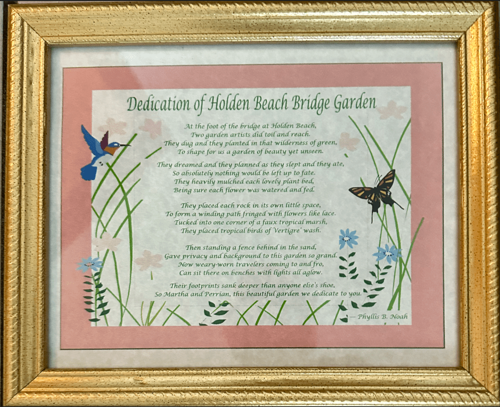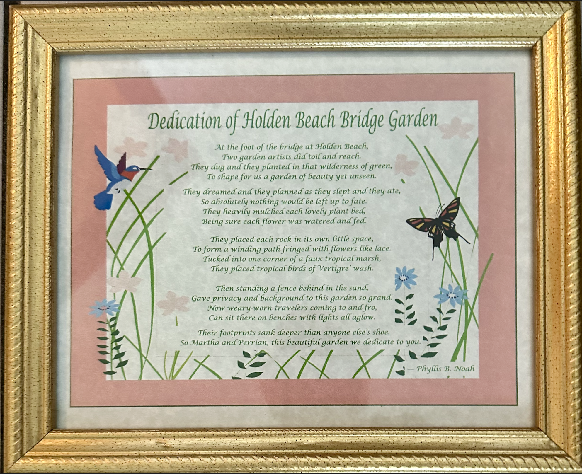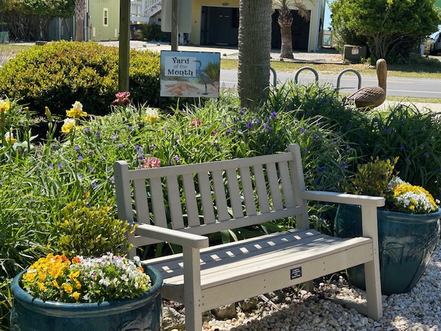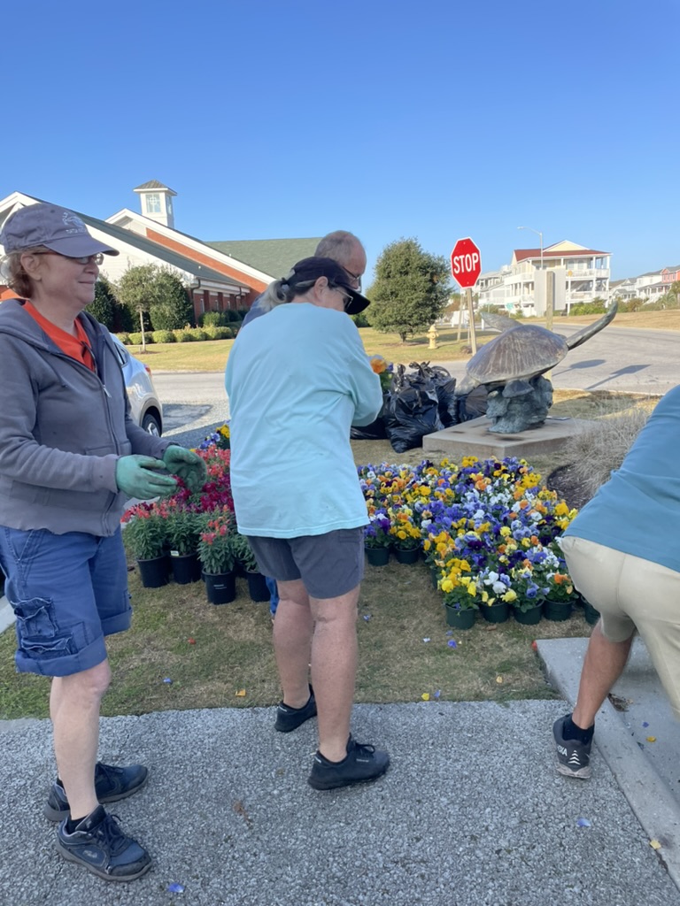 Every week our volunteers spend an hour or two in the morning caring for the island’s gardens. Dead-heading, weeding, checking that all plants receive irrigation, adding seasonal plants, and in general making sure all the garden areas on Holden Beach look their best.