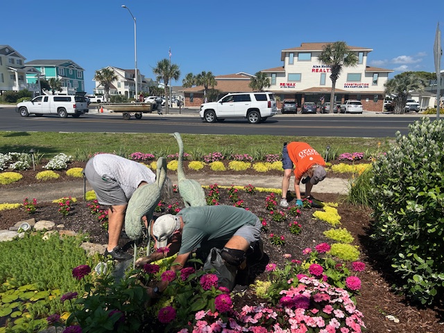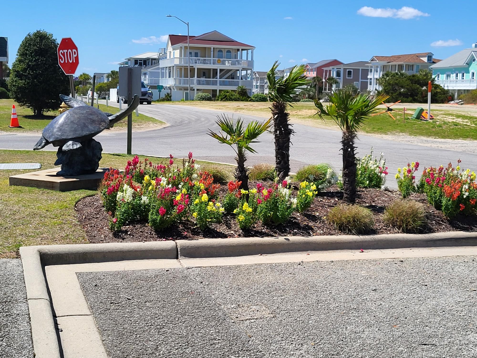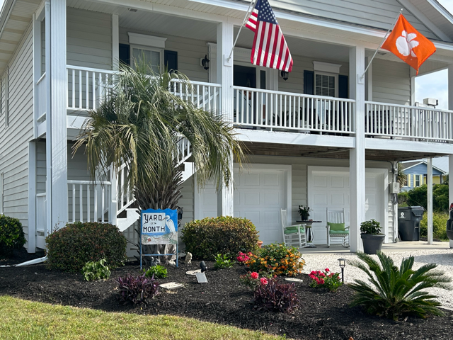 The Holden Beach Beautification Club has selected the inviting yard of Earl and Jan Baker at 142 Carolina Ave. for the August Yard of the Month. Earl and Jan’s home and yard are a cheerful palate of a variety of plants. A few to mention are guara, palms, ferns, canna, geraniums, and caladiums, as well as birdfeeders and whimsical hardscapes. Earl and Jan share their home with two friendly Yorkies.